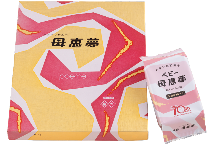 株式会社母恵夢創業70周年を記念して、創業当時の贈答用箱をもとに「ベビー母恵夢」のパッケージをリ・デザインしました。