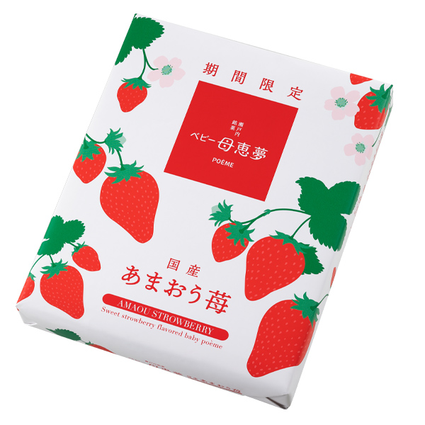 国産のあまおうのピューレを加えた餡と、しっとりとした生地が出会ったベビー母恵夢は、ふんわりと広がる甘くさわやかな香りと、甘酸っぱさを感じる味わいが冬から春への季節にぴったりです。