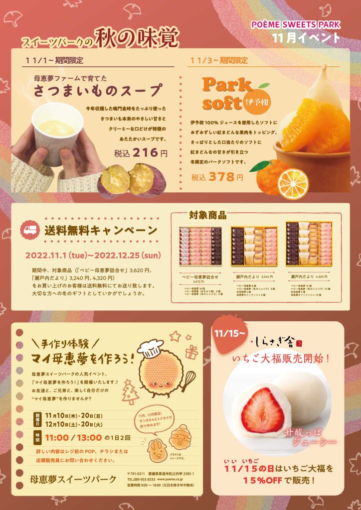 母恵夢スイーツパークでは今月も限定商品やイベントをご用意して、