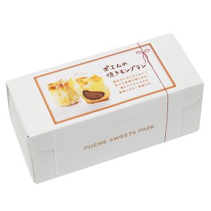 店内平釜で毎日焼きたてをお出ししている母恵夢スイーツパーク限定「焼きモンブラン」。