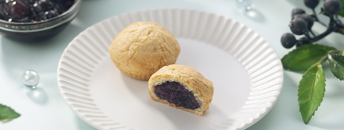 味豊かなブルーベリーを使った餡を、サクサクのパイ生地で包んで焼き上げたパイまんじゅう。