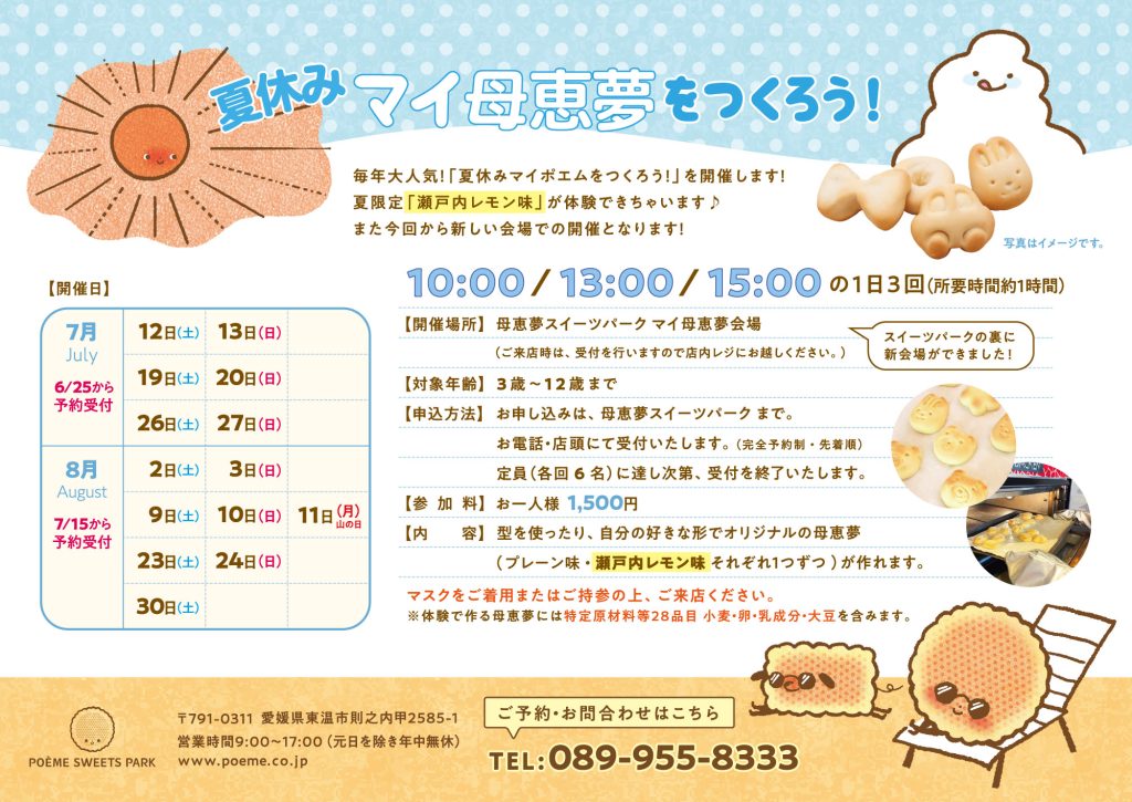 8月分予約開始日:7月15日夏休みは、ポエムの工場見学ができる母恵夢スイーツパークで