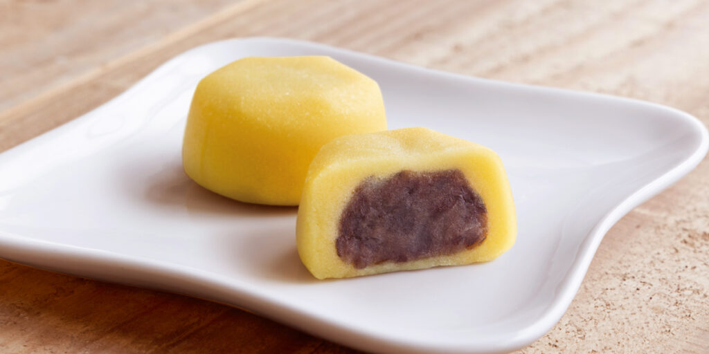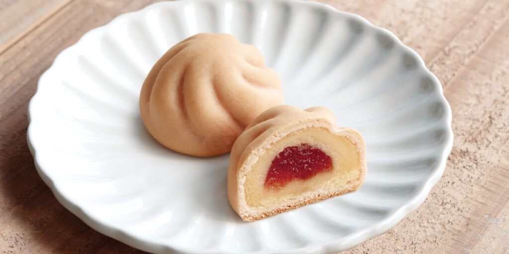 自家製の苺ピューレを黄味餡、さらにほんのりピンク色の生地で包んだ可愛らしい形のお饅頭です。口にすると甘酸っぱい苺の風味が広がります。※期間限定