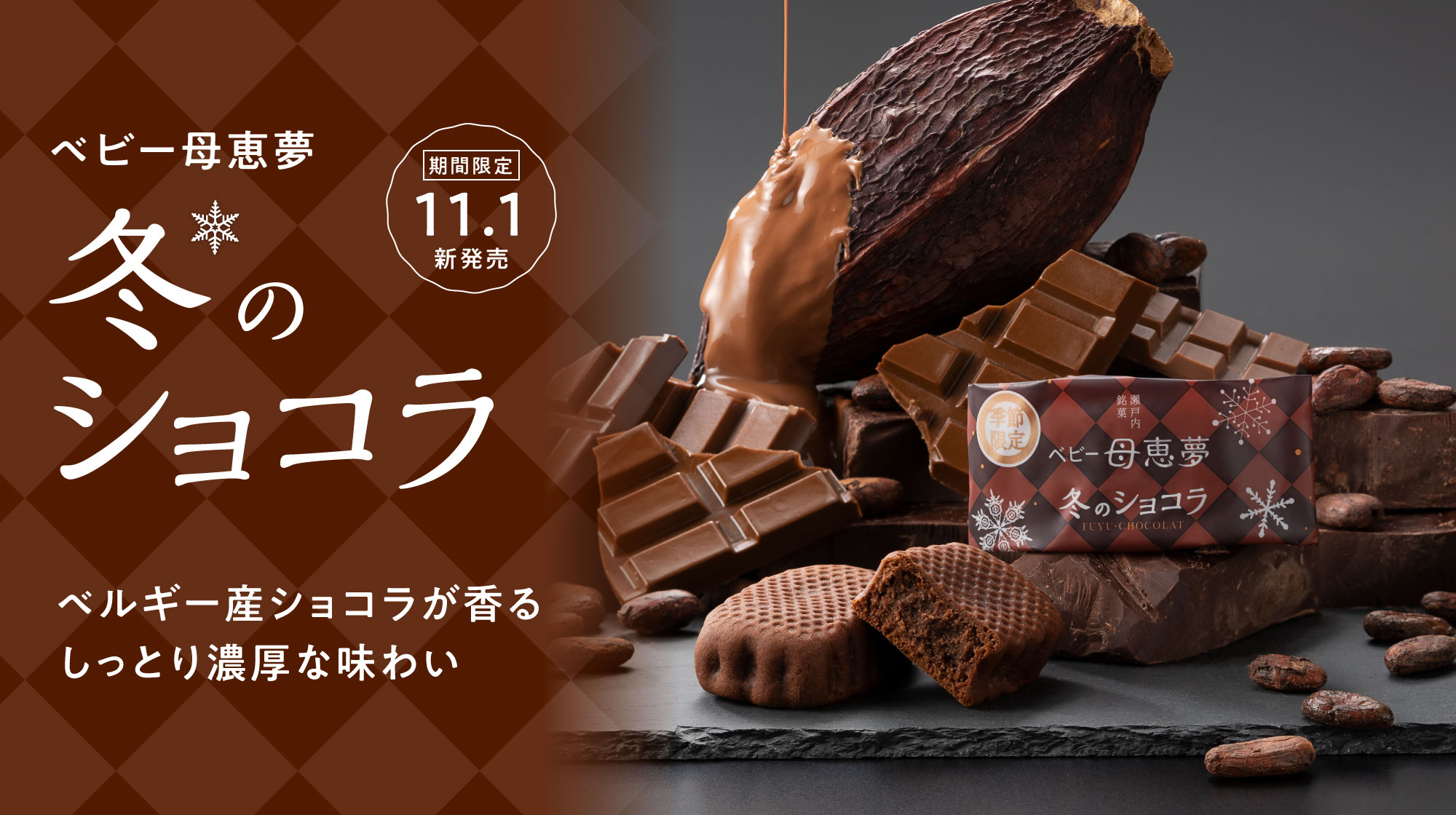 株式会社母恵夢(愛媛県 東温市)は、ロングセラーブランド「ベビー母恵夢(ベビーポエム)冬のショコラ」を11月1日(日)〜2020年2月下旬までの期間限定で発売いたします。チョコレートのしっとりとした口どけと、柔らかく濃厚な味わいをお楽しみいただけます。