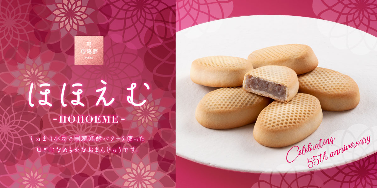 昭和31年に創業し、銘菓「母恵夢」を筆頭に和洋菓子を提供してきた株式会社母恵夢(本社:愛媛県東温市、代表取締役:岡田淳一)は、「ベビー母恵夢」販売55年周年を記念して、新商品「ほほえむ」を2021年4月1日に販売開始いたします。ベビー母恵夢が皆さまに愛されて55年、この商品を通して「ほほえむ時間」がさらに増えますように。
