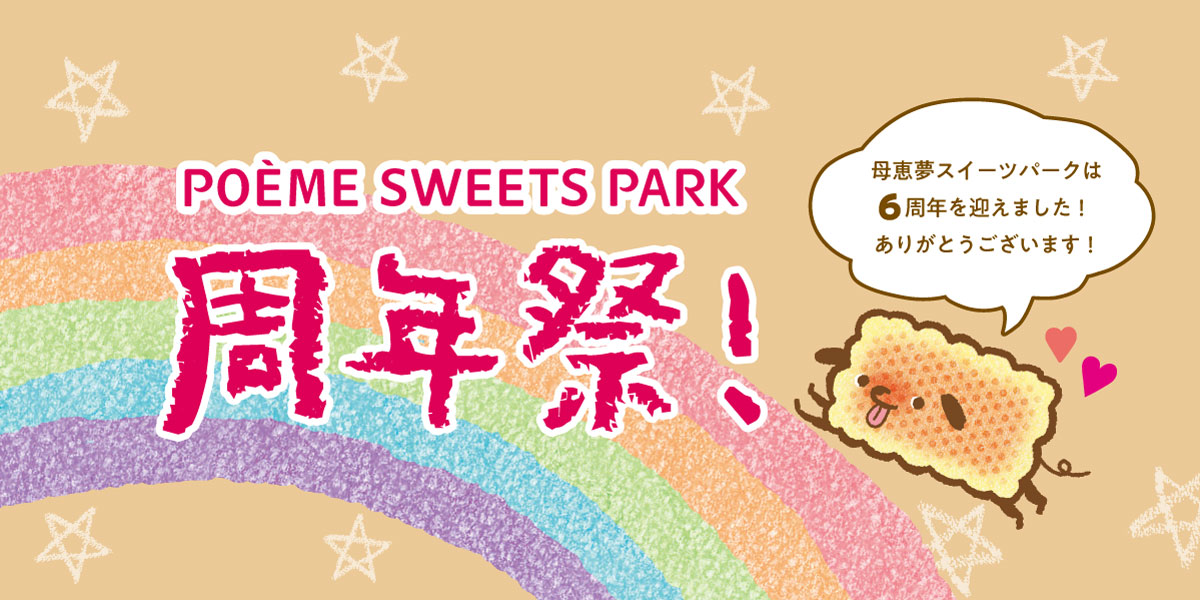 ポエムの製造工程が見られるテーマパーク「母恵夢スイーツパーク」が、おかげさまで6周年を迎えました。日頃よりご愛顧いただいている皆さまへ感謝の気持ちを込めて、周年祭を開催いたします。