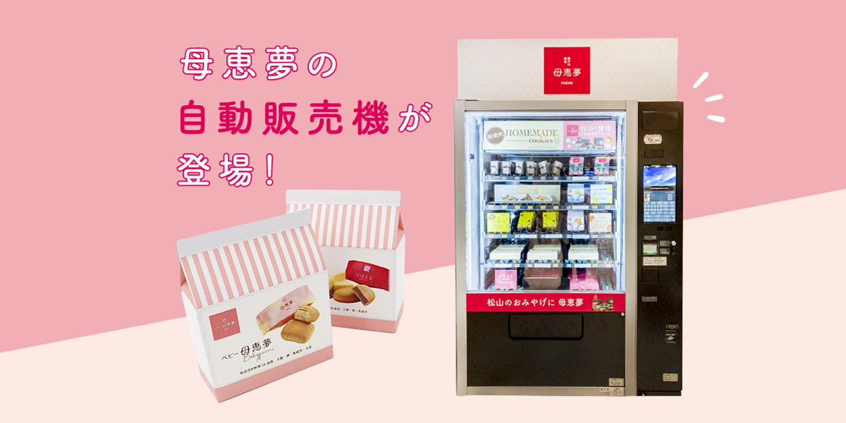 株式会社母恵夢(愛媛県 東温市)は、母恵夢のお菓子が買える自動販売機を設置いたしました。