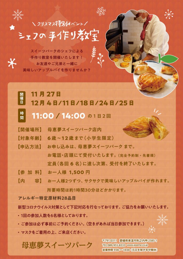母恵夢スイーツパークのシェフによる、手作り教室を開催します!
