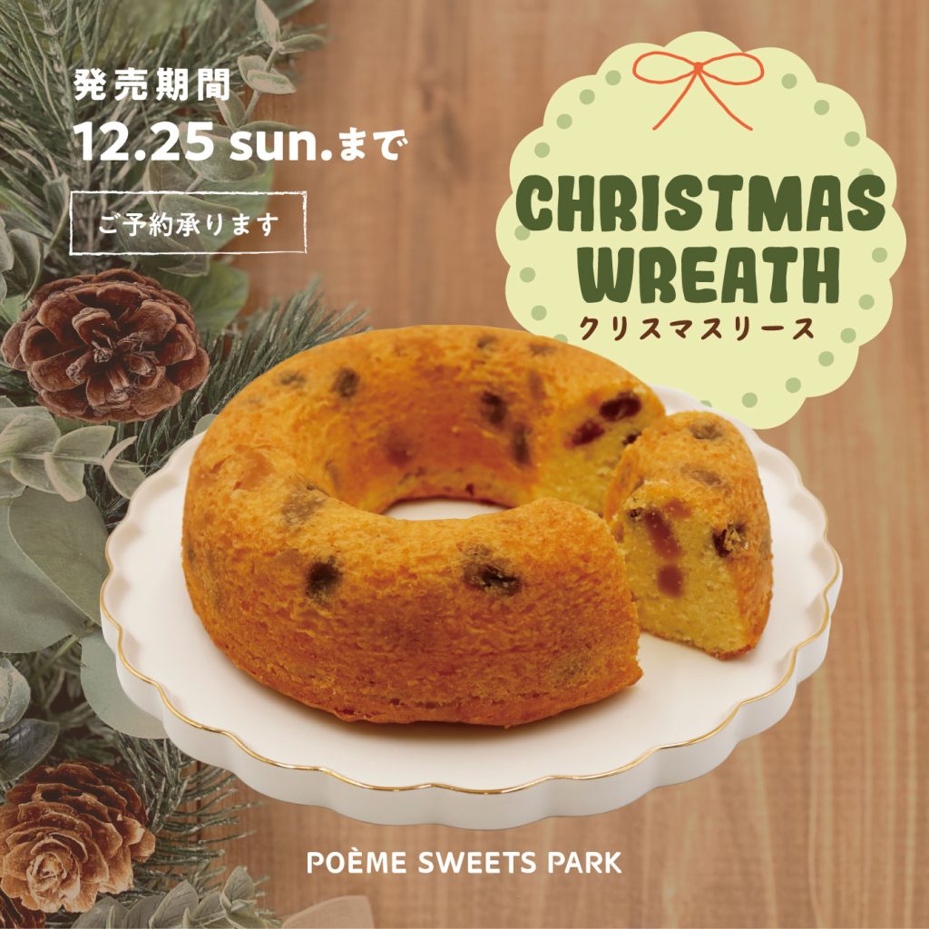 母恵夢スイーツパーク限定、クリスマスリース型のパウンドケーキを限定販売いたします。