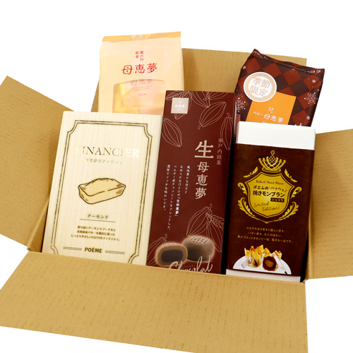 オンラインショップ限定「Ouchi de POÈME」(おうちでポエム)は、母恵夢のお菓子をギュッと詰め込んだ、送料無料のお得なセットです。