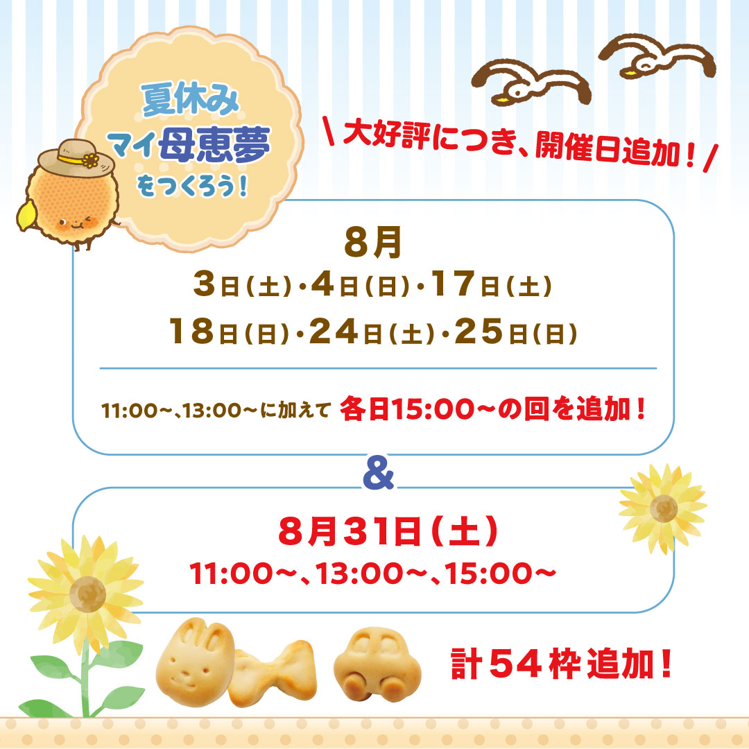 【満席】2024年7・8月 | 夏休みはマイ母恵夢 | 母恵夢スイーツパークで手作り体験♪