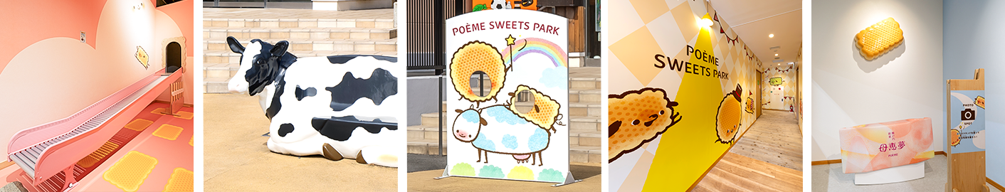 スイーツパークの入口はスロープがあり、館内には多目的トイレもございますので、車いすでも安心してお楽しみいただけます。