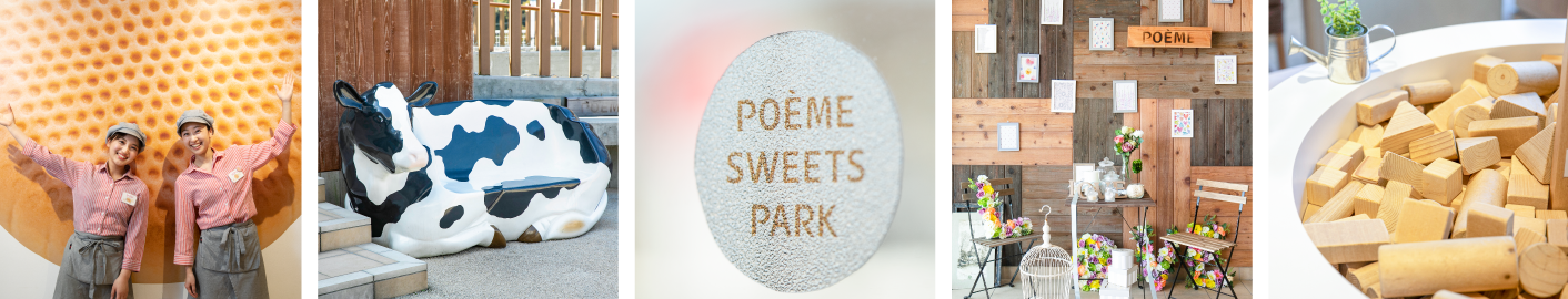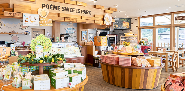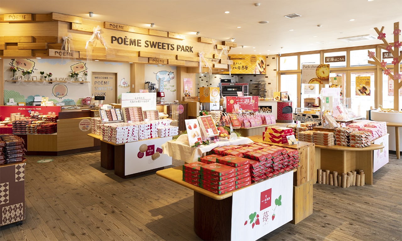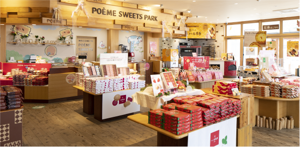 店内でつくるできたてお菓子や、スイーツパーク限定商品をご用意してお待ちしています!